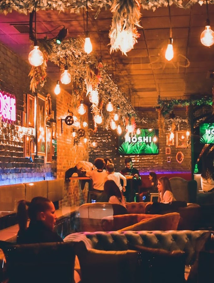 Moshi combina dos significados muy importantes para nosotros. Por un lado, en el idioma suajili, "Moshi" significa humo y en la cultura japonesa, la expresión "Moshi Moshi" es un popular saludo. Si combinamos estos dos significados definimos la filosofía de nuestro nacimiento: darte la bienvenida a un lugar íntimo y exclusivo donde disfrutar de los mejores humos con las más destacadas shishas premium y un sin fin de cartas exclusivas (coctelería, meriendas, cafetería, etc.)